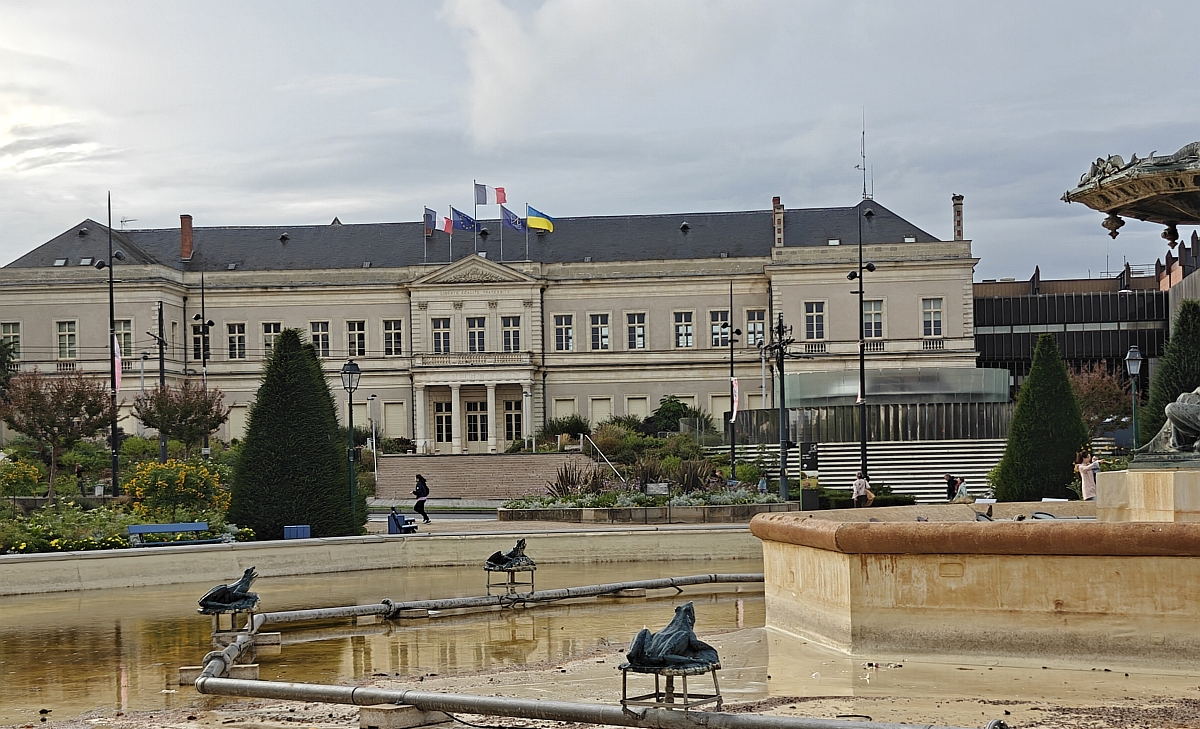 Куда мы ещё прогулялись, так это до мэрии и расположенного напротив майского сада (Jardin du Mail) с красивым фонтаном, который уже не работал... Примечательно, что на здании мэрии среди "естественных" флагов развивался и украинский.