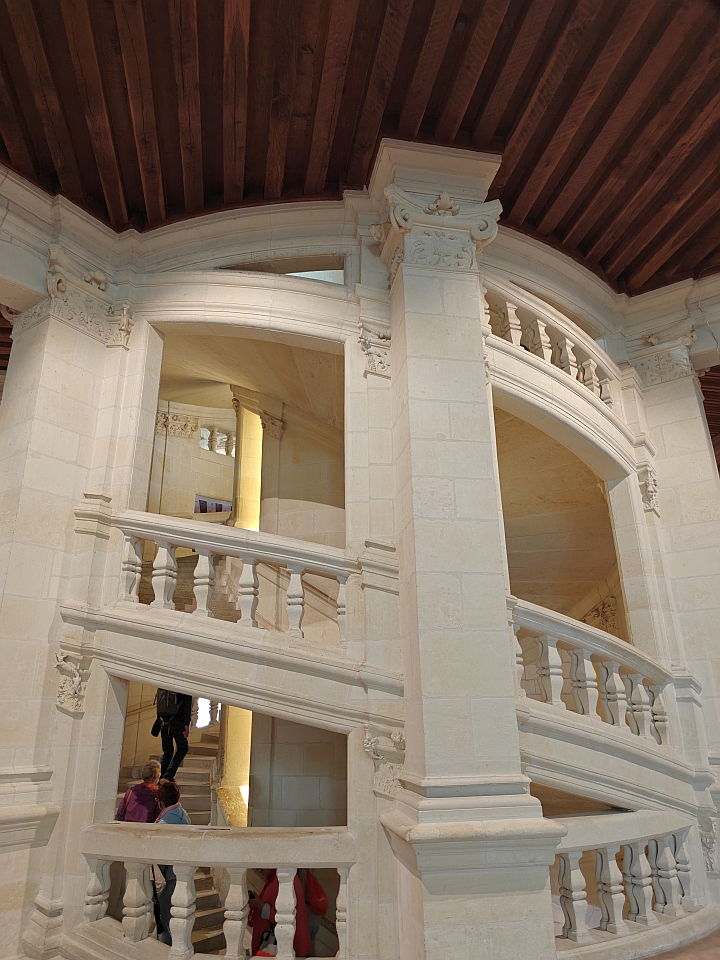 Центральный вход в замок содержит знаменитую двойную винтовую лестницу — архитектурное чудо эпохи Возрождения, построенную по проектам Л.да Винчи.